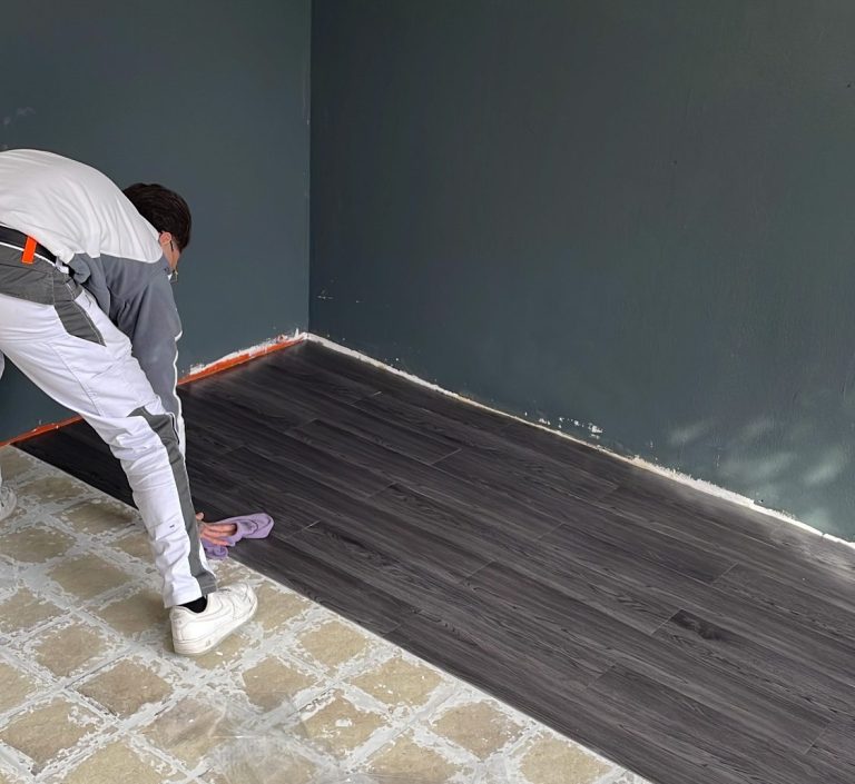 Unser System basiert auf einem modernen Vinylboden mit speziellem Klebesystem, der sich effizient und präzise verlegen lässt. Dadurch können Räume deutlich schneller renoviert werden als mit vielen herkömmlichen Bodenbelägen. Das Ergebnis ist ein hochwertiger, moderner Boden, der schnell installiert werden kann und gleichzeitig langfristig praktisch und pflegeleicht bleibt.